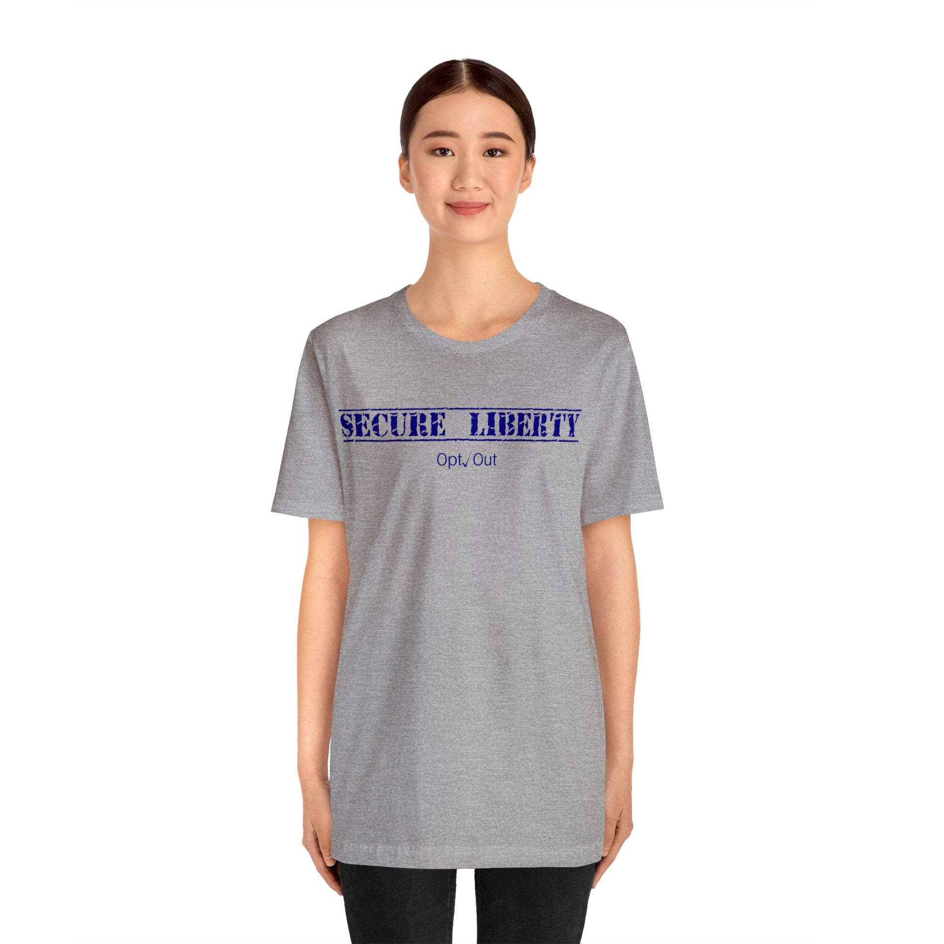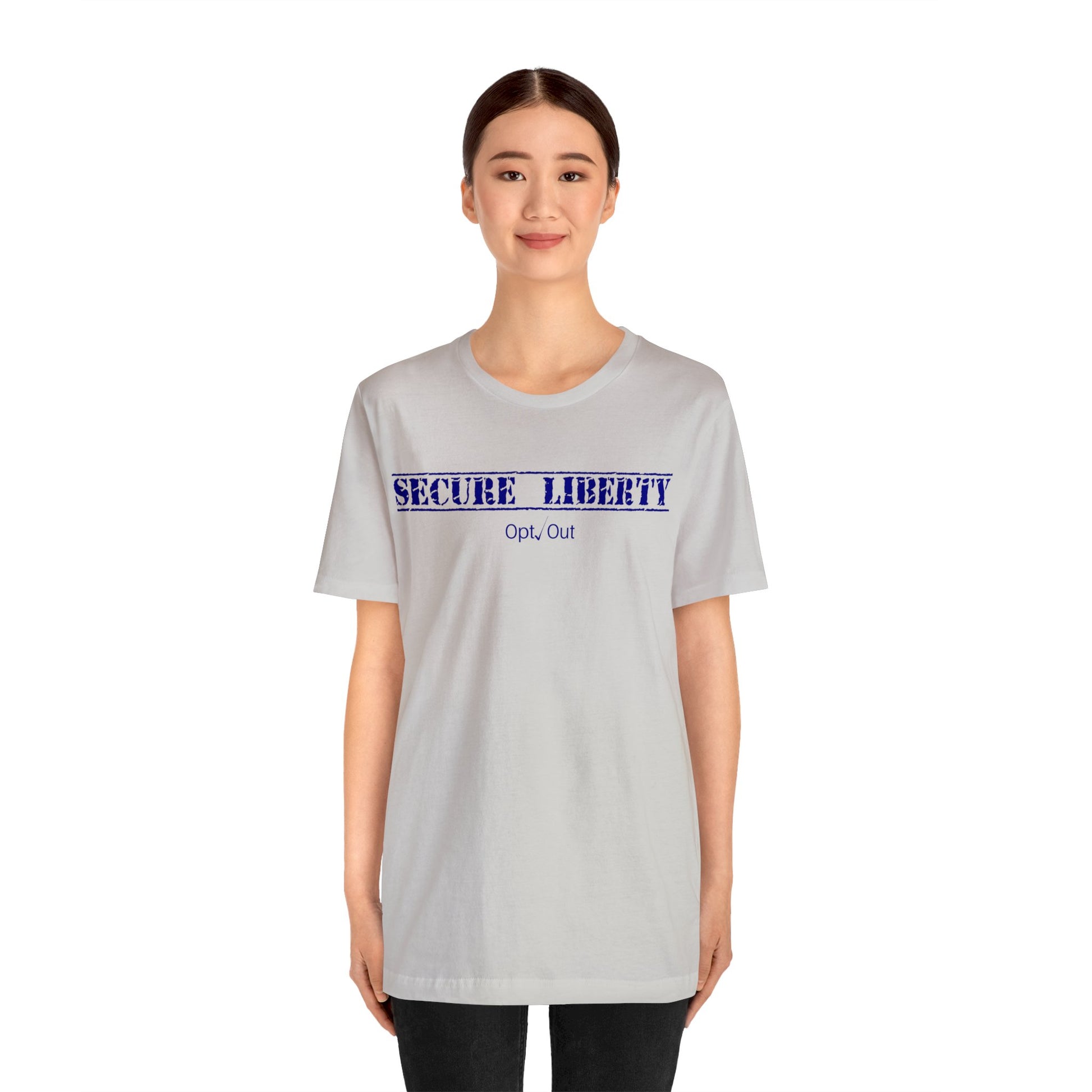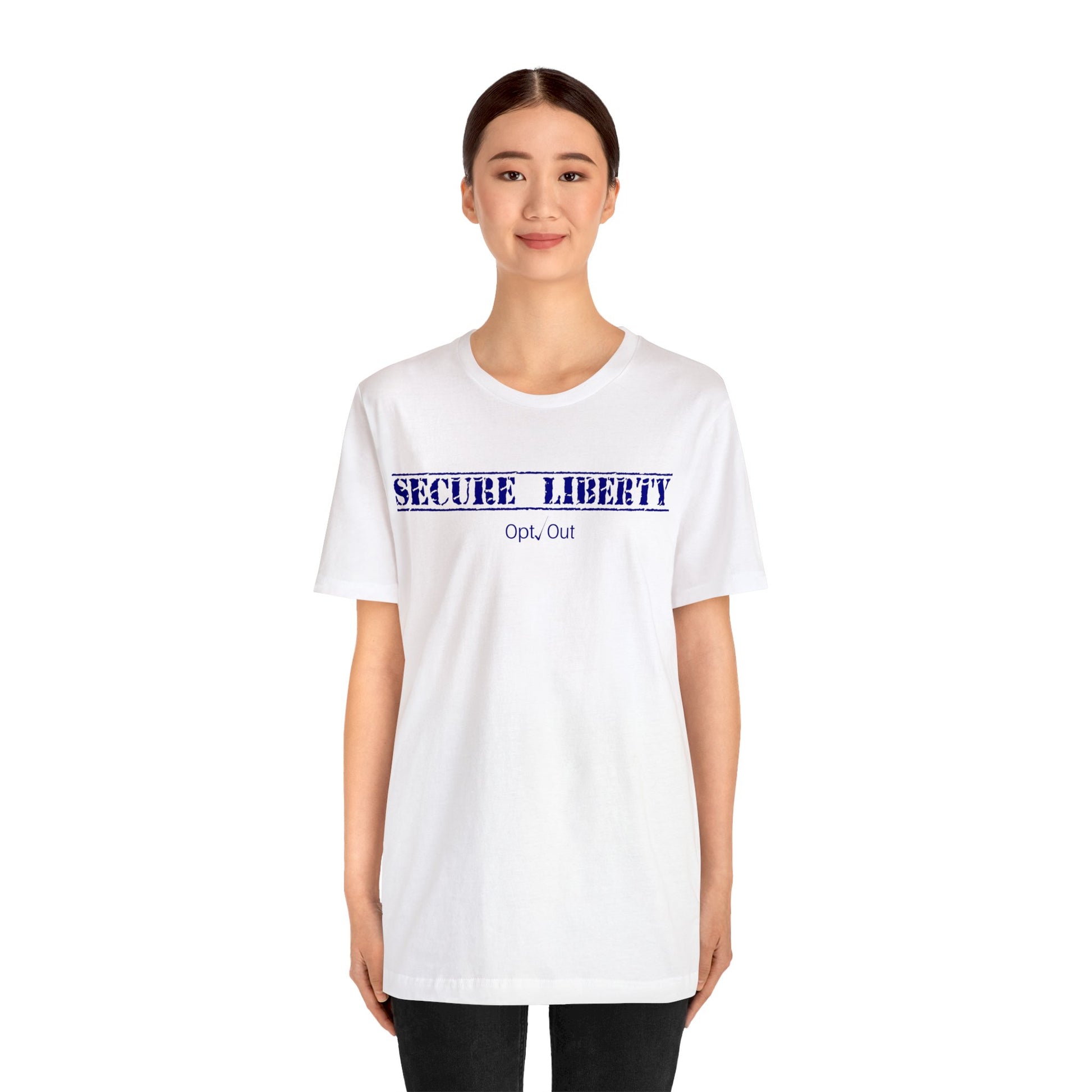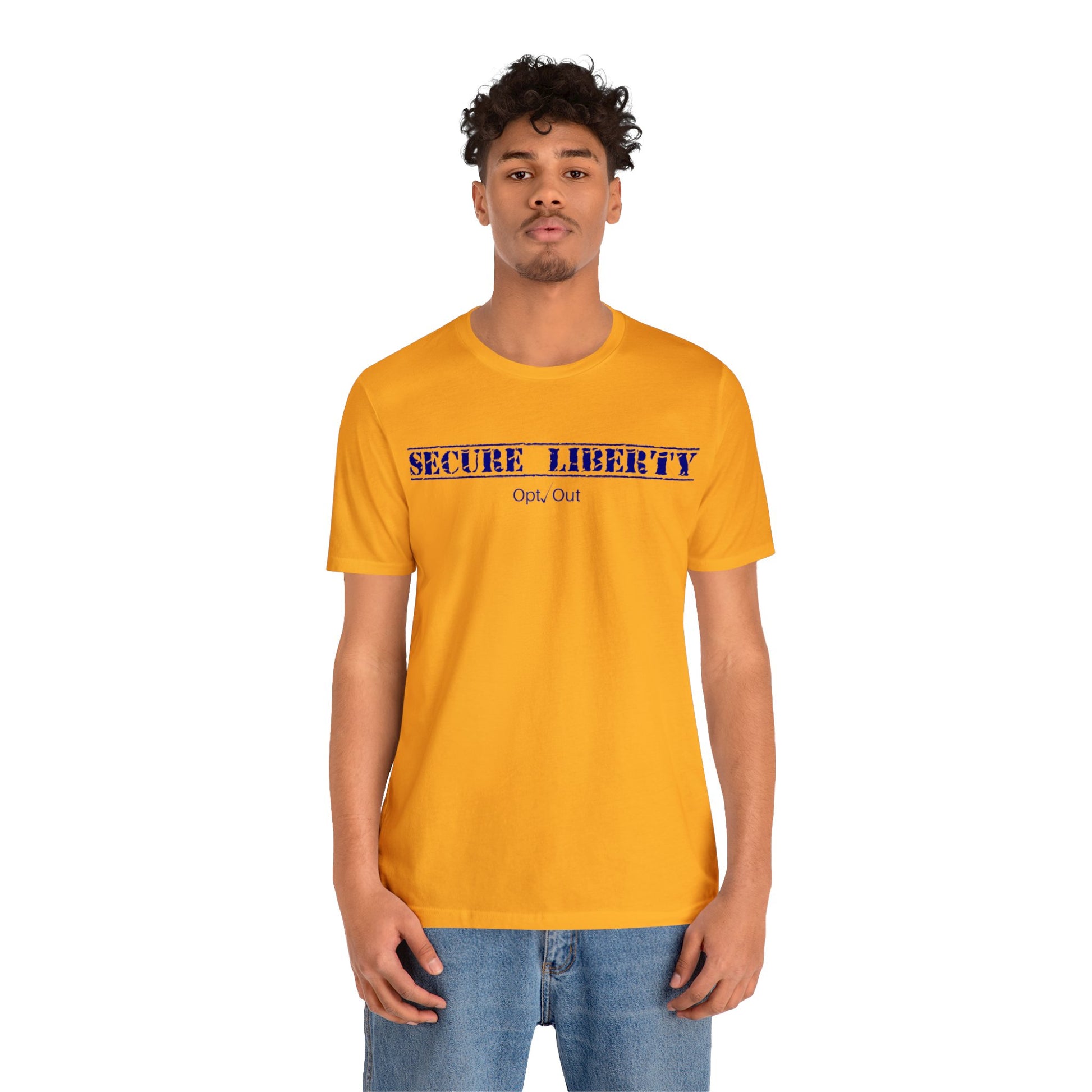 Whoever wears this shirt is making the statement that the responsibility of government is to secure liberty for ourselves and our posterity. If anything is advanced by the culture as a threat to that Liberty, they will simply Opt Out.